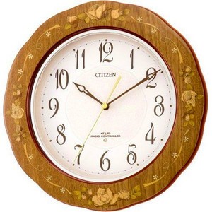 お部屋に華を添える 象嵌仕上げ木枠 電波掛時計